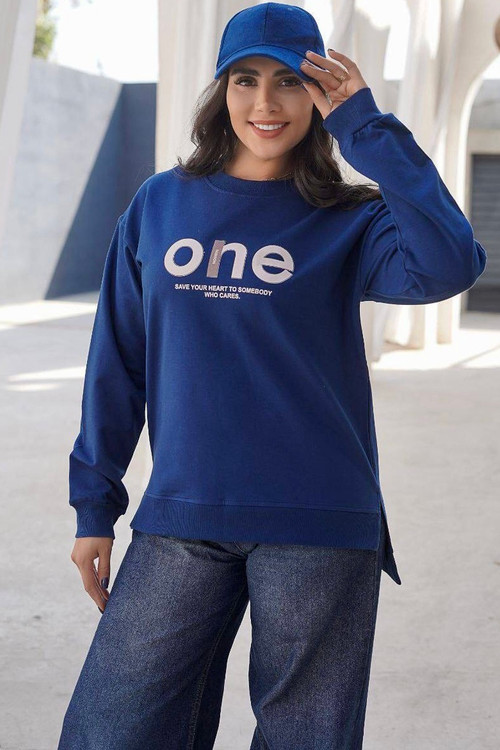 بلوز یقه گرد آستین بلند زنانه پایین بلوز دو طرف چاک دار هست