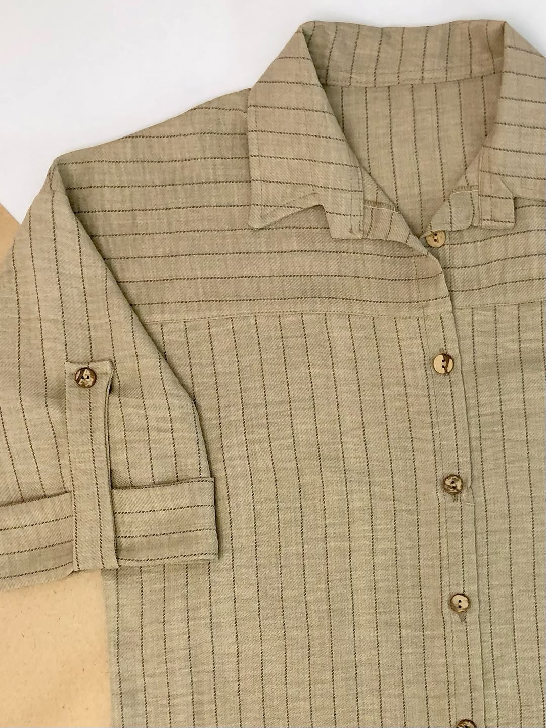 شومیز دیپلمات جنس:شانتون نخ کجراه بسیار خنک و لطیف کیفیت جنس و دوخت. تضمینیاست نه تغییر حالت میده نه رنگدهی داره همچنین بدون آبرَفت هست رنگبندی: در ۵ رنگ> کرم / خاکی /آجری / مشکی/سورمهای سایزبندی: فری اندازهها قد شومیزاز سرشانه:۶۵ قد آستین از یقه :۵۵ دورسینه:۱۲۶ دور کمر:۱۱۰ مناسب از سایز ۳۸ تا ۴۴ بسیار مناسب فصل تابستون میتونید با شلوار جین بگ یا پارچهای بگ و یا نیم بگ سِت کنید و یه استایل تابستونه بسازید لطفا عکس ها رو با دقت نگاه کنید که از تنخور کار عکاسی شده